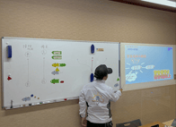 学科教習はスライドや、プロジェクターを使い,受講生からも分かりやすい講習とご好評いただいています。