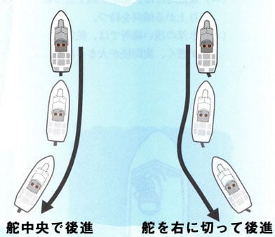 一軸右回り船では、前進時は船尾を右に、後進時には船尾を左に動かす力が発生します。