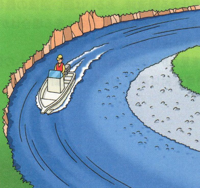 湾曲部の内側は浅い