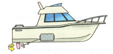 - プロペラシャフトやドライブなどに取り付けてある防食亜鉛の点検・交換を行います。亜鉛の大きさが半分ぐらいに減ったら新品と交換します。防食亜鉛の働きを妨げるので塗装してはいけません。(ドライブ等が水中で水と摩擦すると静電気がたまります。たまった電気がドライブから海水中に放電するとドライブの金属が溶けます。ドライブ等に防食亜鉛を取り付けておくと、イオン化の強い亜鉛が先に海水中に放電し、亜鉛が溶けることによって周りの金属を守ることが出来ます。)