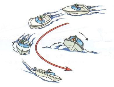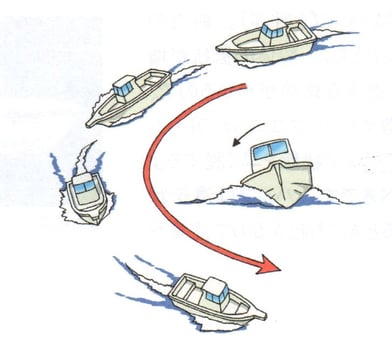 1 排水型のボートは旋回時に外側に傾斜します。