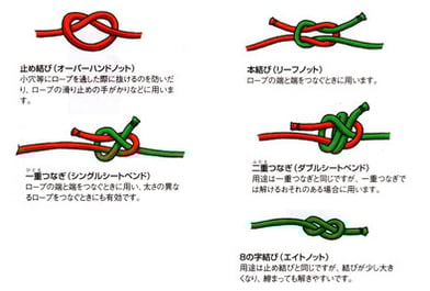 ロープを結んだり、つないだりする作業を結索(ロープワーク)といいます。