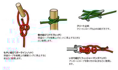 - いかり結び →錨にロープを取り付けるなどに使用します。