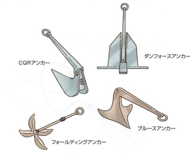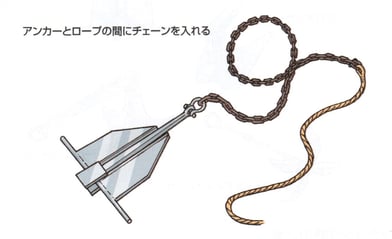 アンカー(錨)は、船上から投入して海底に食い込ませ船を止めます。